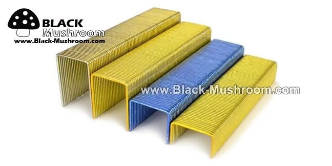 zinc-plated steel staples can make different color: galvanized color, copper color, golden color, bronzed color, blue color and others, upon request.